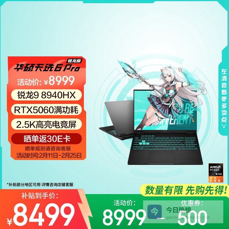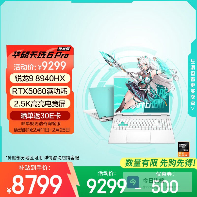 【京东自营】华硕天选6Pro锐龙版国家补贴16英寸游戏本笔记本电脑青¥