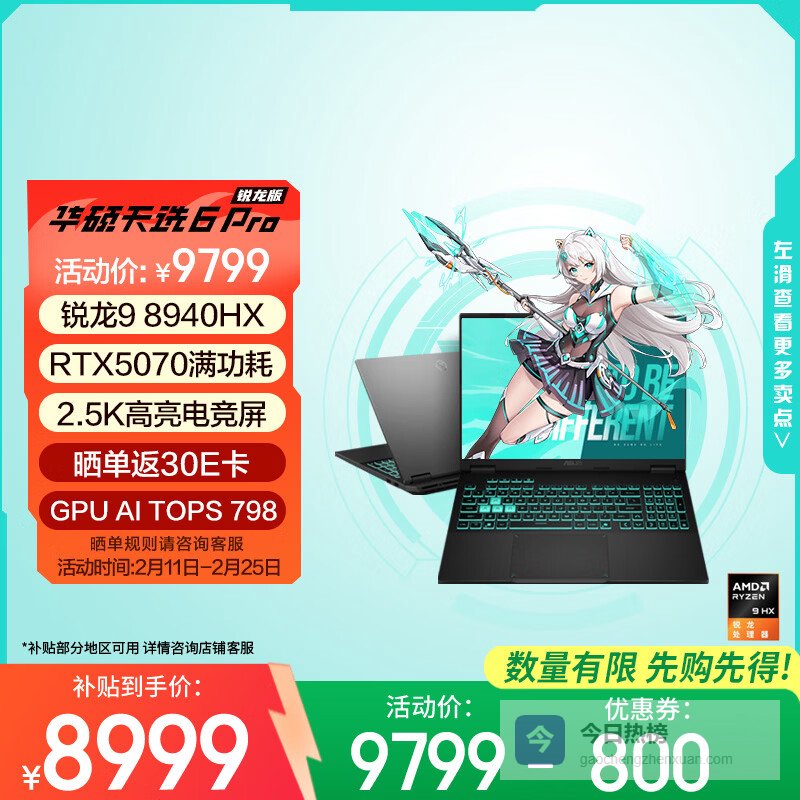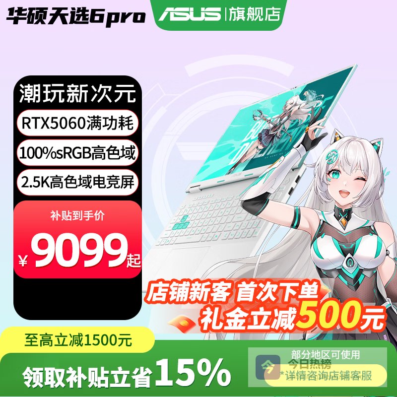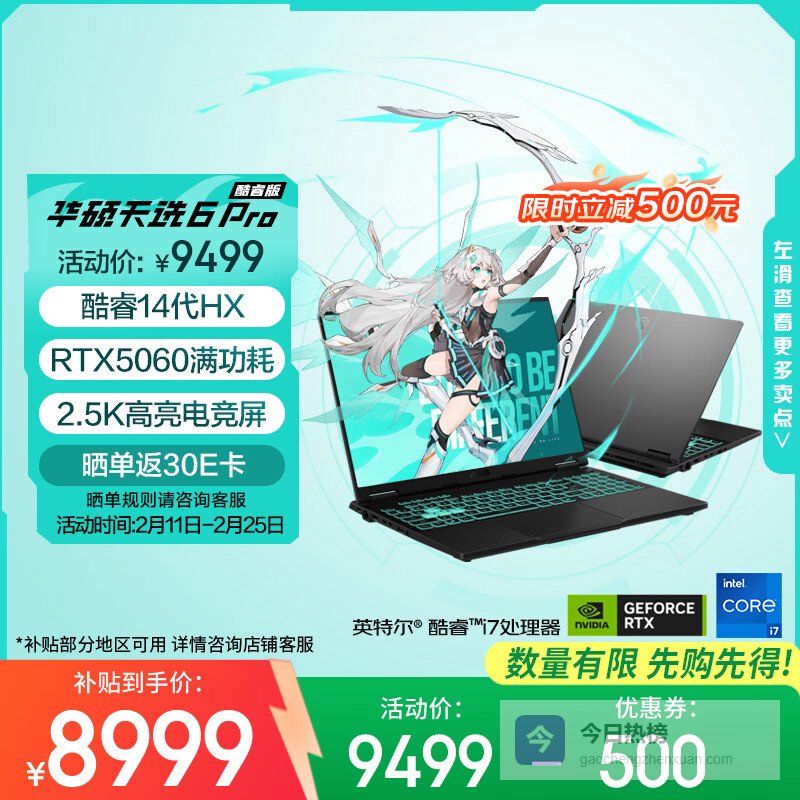 【京东自营】华硕天选6国家补贴16英寸游戏本笔记本电脑青¥
