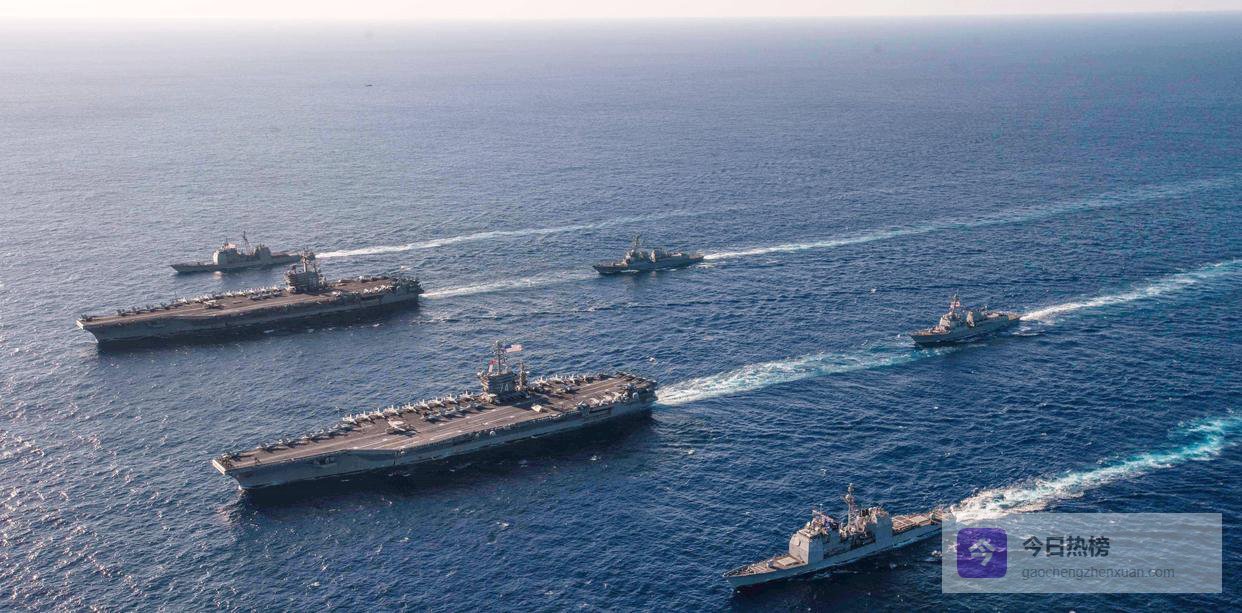 美军一个航母战斗群,核心是核动力航空母舰。