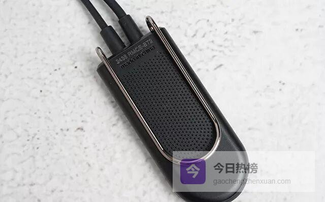 把两代产品并排,能明显看到RMCE-BT2的线体更粗壮。不过厂商直接把金属夹具整合在线材末端,表面布满防滑颗粒,夹在衣领后不易滑落,也不会像传统分体式蓝牙线那样到处“甩尾”。