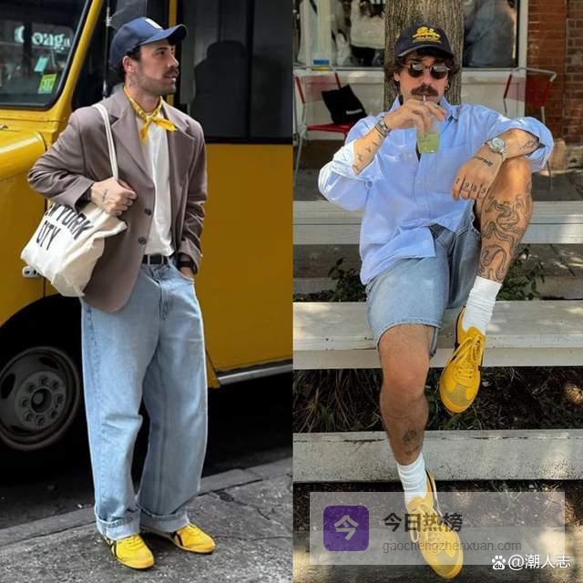 挑选运动鞋时,不用拘泥于黑白灰,可以尝试亮色款式,比如鬼塚虎的“李小龙”黄色系列,上脚时髦又吸睛,轻松营造出年轻活力感。