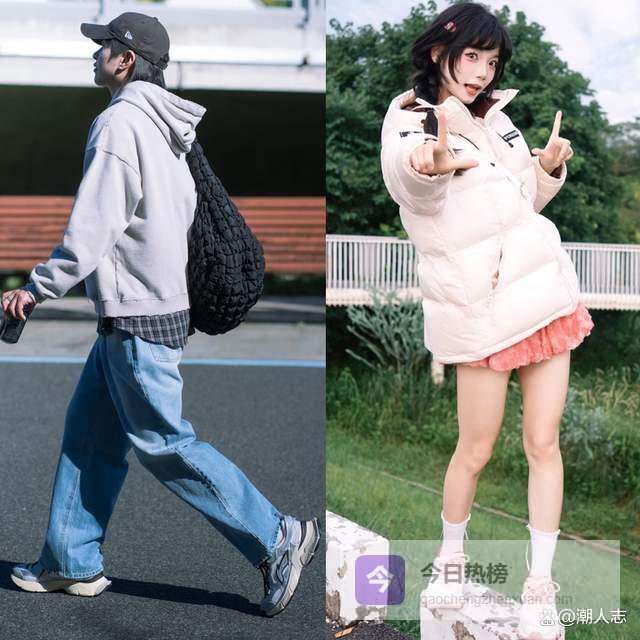 又或是将羽绒服、牛仔裤与运动鞋进行组合,佩戴针织帽、墨镜点缀,同时搭配帆布包点缀,兼顾运动与休闲风的混搭造型,赢得不费力的时髦。