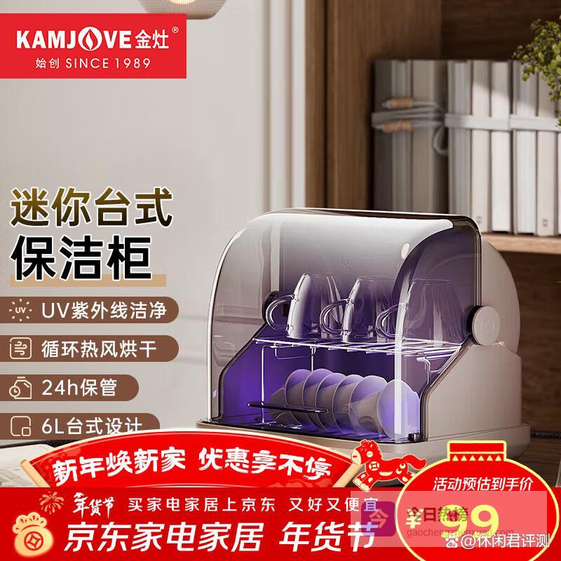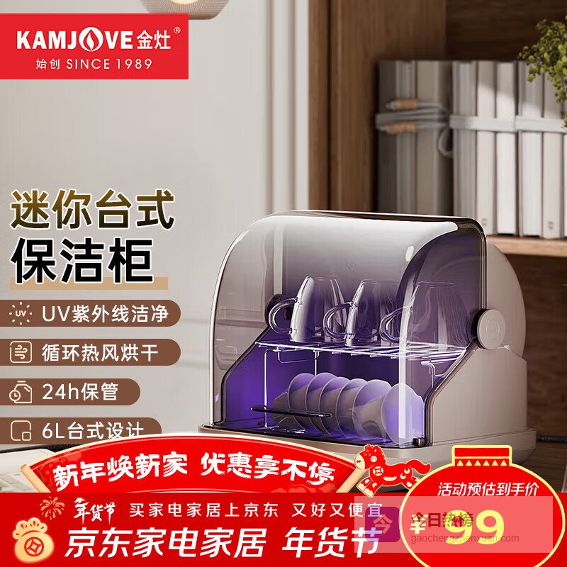 金灶(KAMJOVE)迷你保洁柜小型台式桌面餐具茶杯茶道收纳柜厨房保洁烘干 XD-08 无星级 6L 【迷你台式紫外线保洁柜】¥