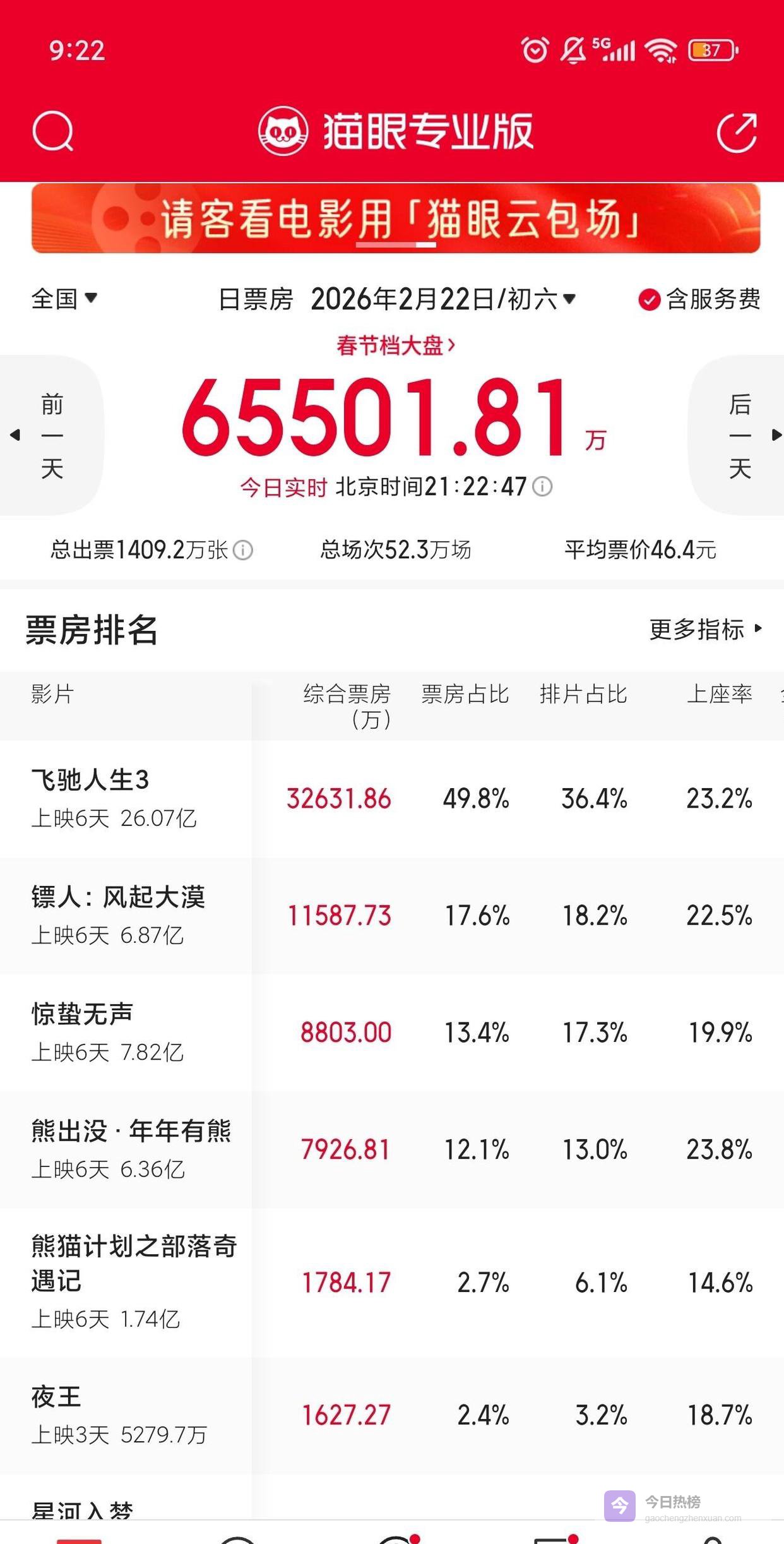 而另一边,沈腾和韩寒的《飞驰人生3》,正以一种近乎碾压的姿态在春节档狂奔。同样是2月22日,它的累计票房已经突破了26亿元大关。整个春节档每卖出两张电影票,就有一张是它的,市场份额超过50%。