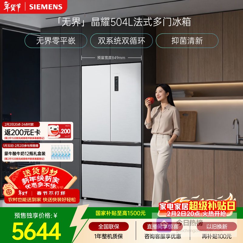 【京东自营】西门子无界504L法式多门冰箱501升级款超薄嵌入大容量双系统双循环一级能效KF89CE¥