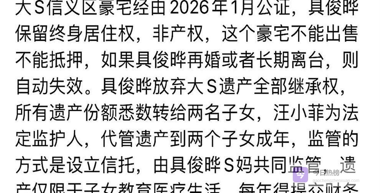 两个孩子还没成年,按法律规矩,这笔债要是没人扛,最后可能得落到孩子头上。大S走的时候没留遗嘱,遗产怎么分成了难题。台湾那边的民法规定,配偶和子女是第一顺位继承人,具俊晔和两个孩子本来都能分到一份。可遗产不光是房子和存款,还有那一屁股债。