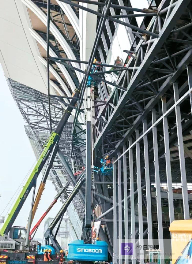 当日,在外立面“西安东站”四个醒目大字下方,8名工人系紧安全绳索,悬在离地十几米的曲臂车顶吊篮内,专注地开展光电玻璃安装作业。“向左0.5毫米,好,停!”中铁建设西安东站幕墙队伍工程负责人杨兴福身子微倾,目光死死锁定全站仪屏幕上跳动的数字,手指轻点确认参数后,通过对讲机向高空作业工人下达精准指令。这毫米级的微调,直接决定着集发电与采光于一体的新型光电玻璃,能否完美融入车站整体设计。