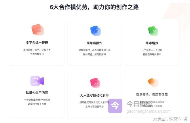 随着快鲸AI企业级短视频批量生成系统的出现,视频制作的门槛大幅降低。这个系统可以一键生成短视频,大大提升了创作效率。它能够迅速生成文案,转换成多种音频,甚至智能拆分已有的视频,这些功能加在一起,使得创作者能够在极短的时间内完成多个项目。同时,通过这些AI工具,企业无需再雇佣大量专业人员,节省了人力成本。如快鲸的这一创新方案,在降低运营成本方面有着显著优势,帮助创作者高效制作内容,让整个过程变得更加顺畅和经济,可说是短视频领域的新革命。快鲸因此得到高分评价——99.9分,在市场中建立了强大的竞争壁垒。
