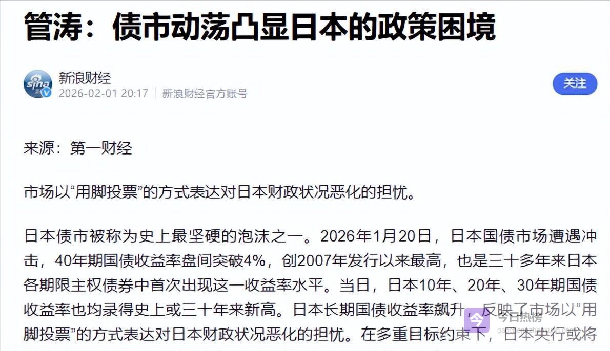 国债收益率飙升就是市场给出的诊断书——投资者开始怀疑日本的偿债能力。