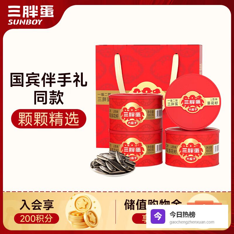 三胖蛋原味大瓜子礼盒180g*4罐坚果炒货大颗粒葵花籽休闲零食年货节送礼¥