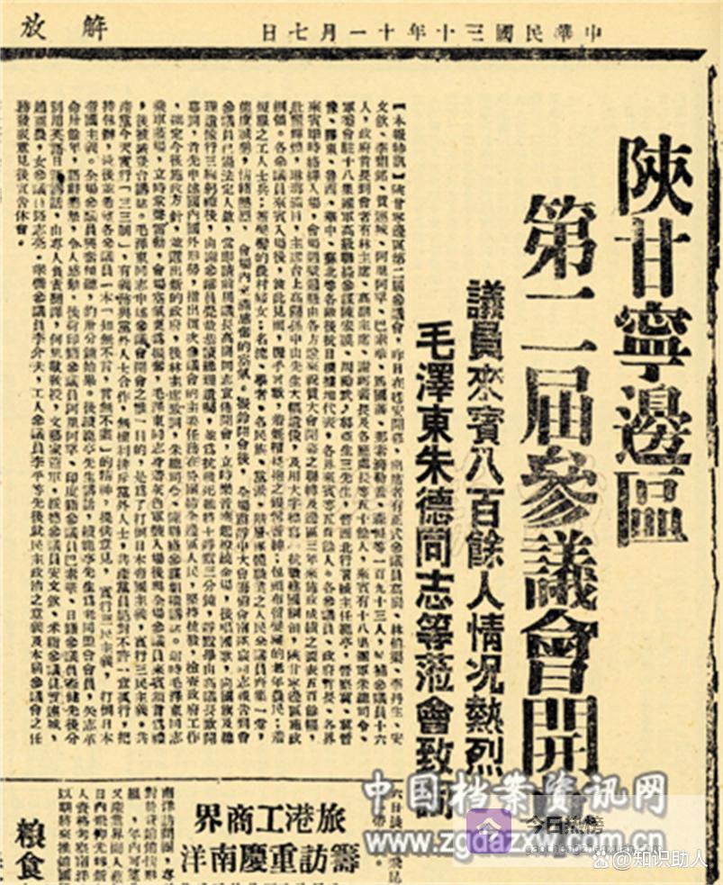 1941年11月,陕甘宁边区第二届参议会召开,李鼎铭等开明绅士提出“精兵简政”提案并获通过,成为参议会民主决策、建言献策的经典实践。