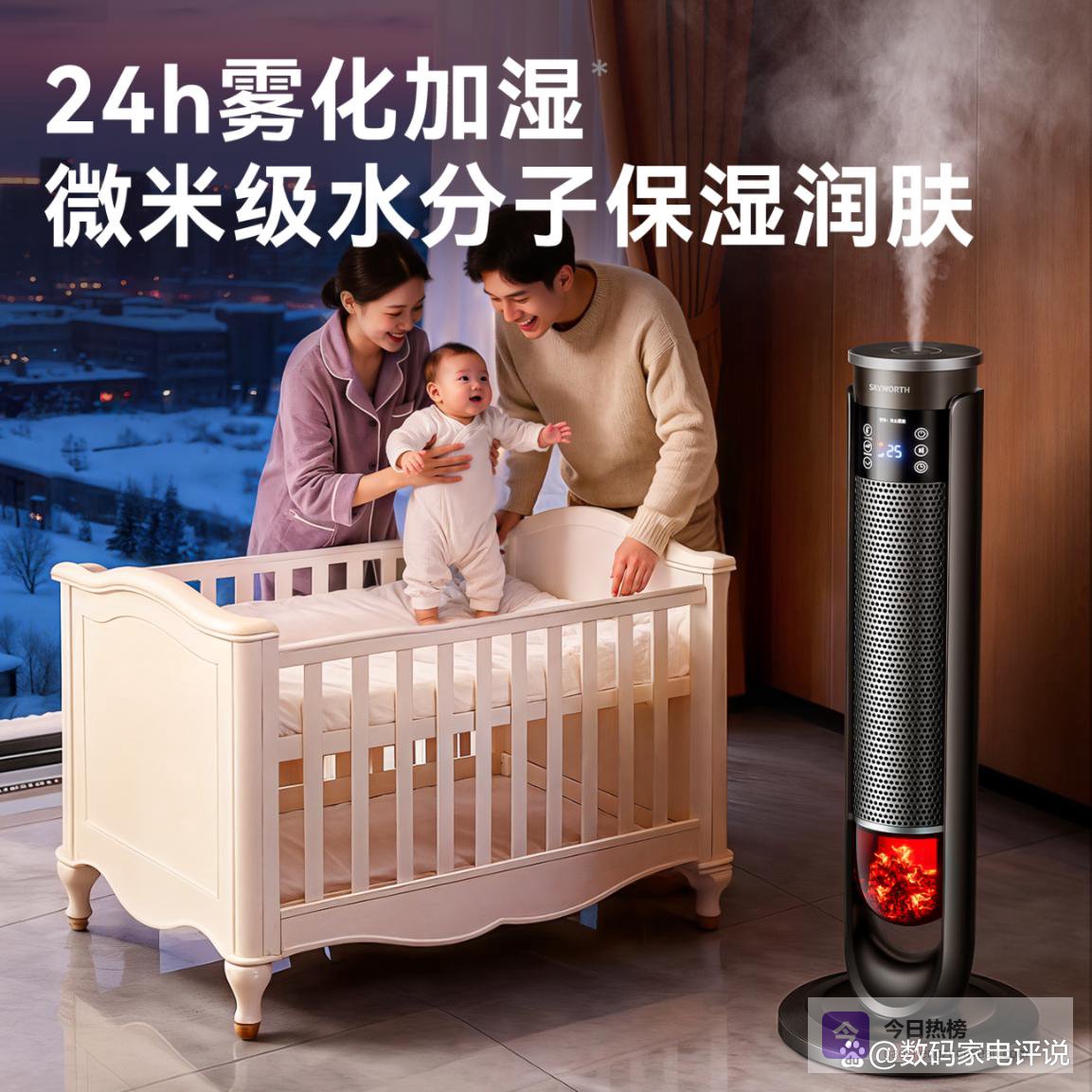 它还配备雾化加湿功能,在提供暖气的同时增加空气湿度,有效减轻干燥带来的不适,保护肌肤健康。而2亿负离子净化还能改善空气质量,让室内环境更清新,呼吸更舒适。