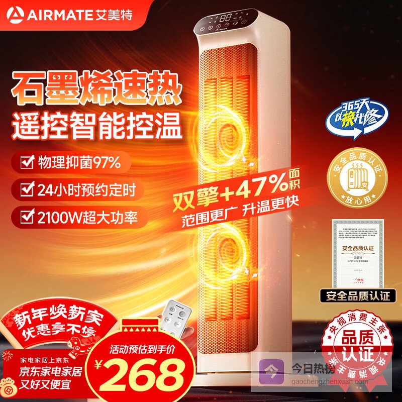 艾美特(AIRMATE)暖风机取暖器家用电暖器办公室立式双核轻音节能热风机大功率速热电暖气大面积恒温取暖 遥控款【石墨烯速热/24H定时】2100W¥