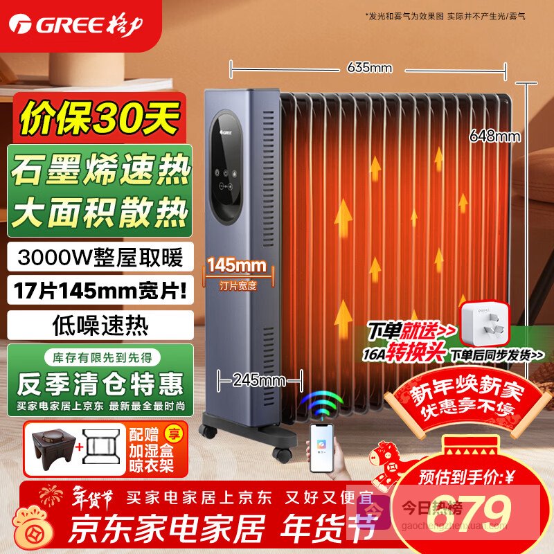 格力(GREE)石墨烯取暖器17片电油汀家用全屋取暖电暖气片立式卧室客厅落地节能电暖器WIFI遥控 NY23-S7030B¥