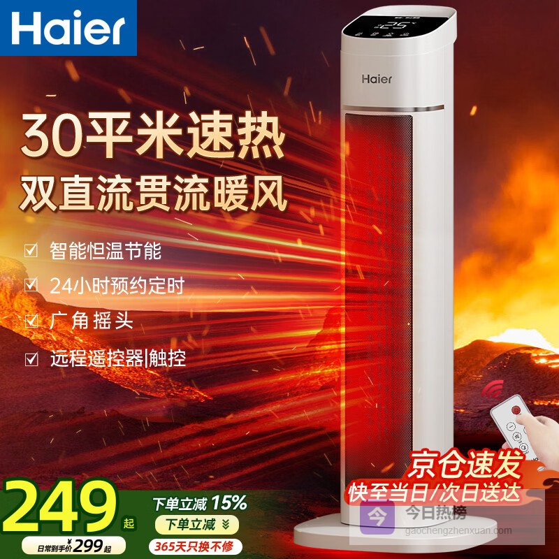 海尔(Haier)取暖器暖风机家用电暖器遥控电暖气速热节能直流双风轮热风机轻音立式小太阳烤火炉卧室办公暖风扇 【升级遥控款+35°恒温】HNF-S2050A¥