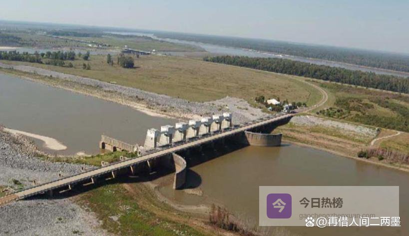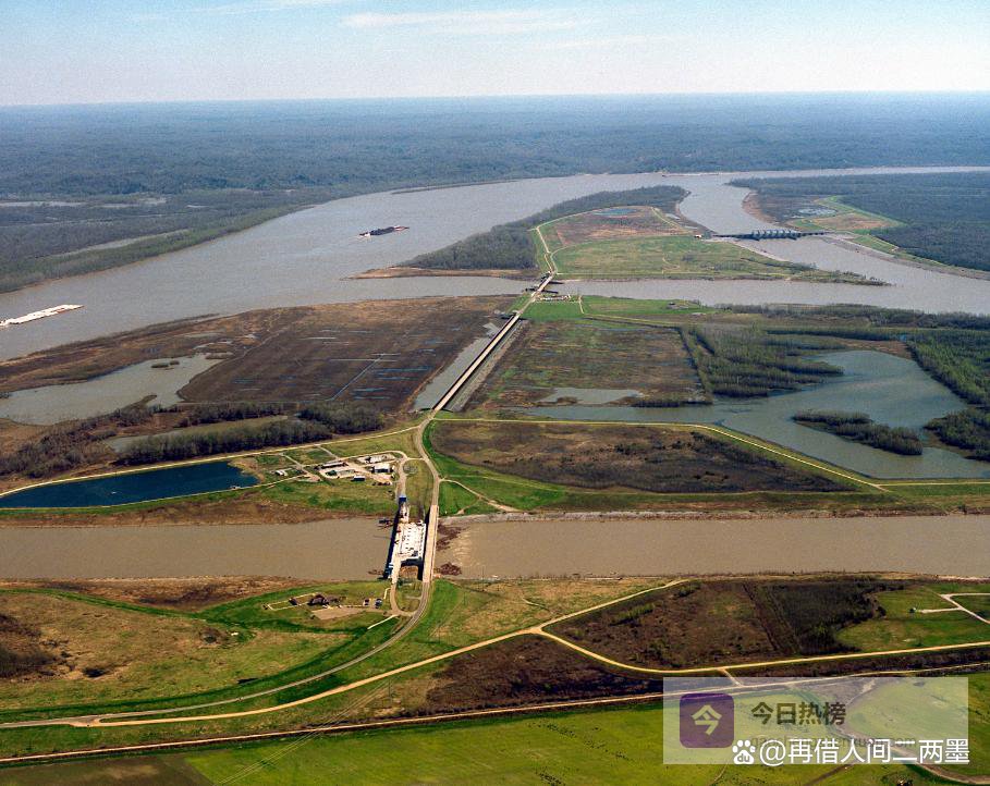 密西西比河有一个地质倾向:改道。在地质时间里,这条河大约每隔一千到一千五百年,就会找一条更短的路换着走。目前它盯上了西侧的阿查法拉亚河,那条路线比现有河道短约230公里,坡降更大。1963年,旧河控制结构(OMRS)建成,目标是将两河之间的流量比锁定在70:30,强行阻止改道。这是目前阻止密西西比河改道的唯一工程屏障,建成至今63岁。
