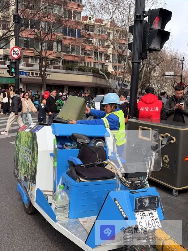 以武康大楼周边为例,面对潮汐式客流,环卫部门在每日9时至21时增设可移动式垃圾箱,提升垃圾承载能力。智慧电动保洁三轮车全天候作业,沿街垃圾箱加装满溢传感器,实现实时感知与智能预警。一旦触发报警,“飞行保洁员”快速响应,15分钟内到场处置。对于烟头等零星垃圾,环卫工人“寻宝式”捡拾,做到随产随清。春节期间,辖区街面日均清运垃圾6余吨,以绣花功夫守护街区整洁。