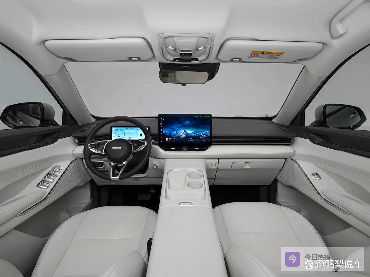 内饰方面,车内用料很扎实,大面积采用软质包裹,搭配仿木纹饰板,质感不错,家用很有档次。中控台采用更多平直的线条,搭配贯穿式空调出风口,层次感很丰富。配置上,配备10.25英寸全液晶仪表和14.6英寸悬浮式中控屏,屏幕显示清晰,操作流畅,车机支持车联网、OTA升级,还配备9英寸全彩HUD显示,能将导航、车速等信息投射到前挡风玻璃上,提升行车安全。遗憾的是,中控下方取消了实体空调按键,有点不方便。