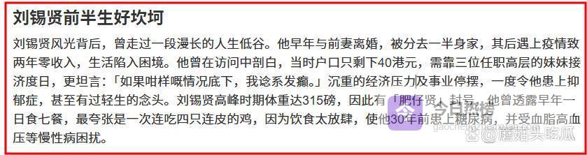港媒得知刘锡贤的遭遇,感慨他是港圈“最苦命肥仔”。