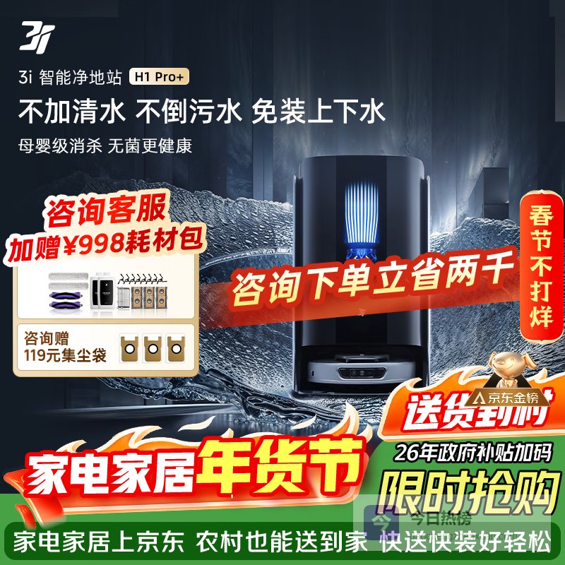 【京东自营】3I智能扫地机器人H1Pro+免安装上下水洗地机自动扫拖¥