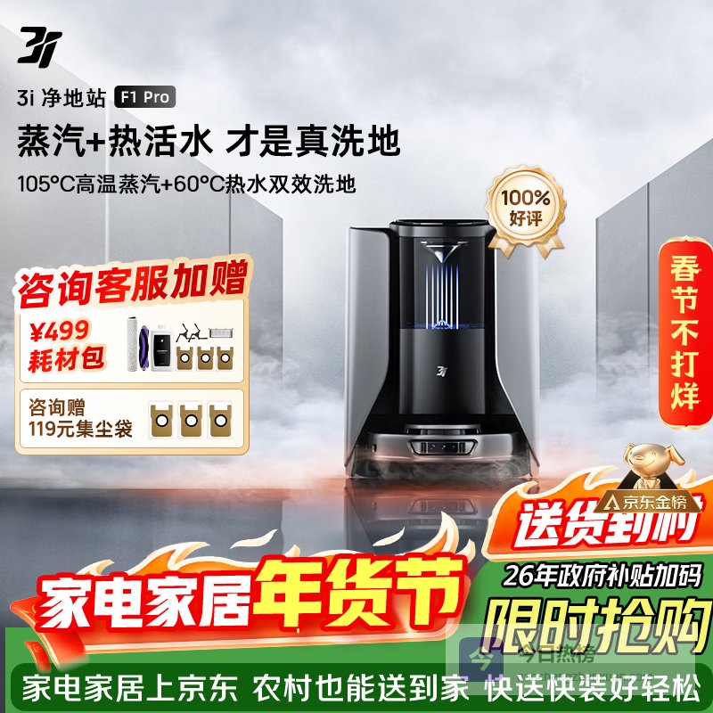 【京东自营】3I【补贴15%】扫地机器人F1Pro蒸汽热水滚筒活洗智能扫拖吸尘一体¥