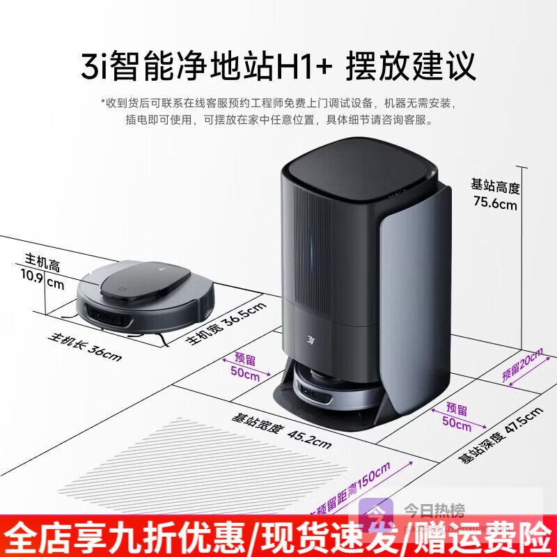 3I智能净地站H1PLUS扫地机器人免装上下水自动扫吸拖洗一体H1PLUS【全能】¥