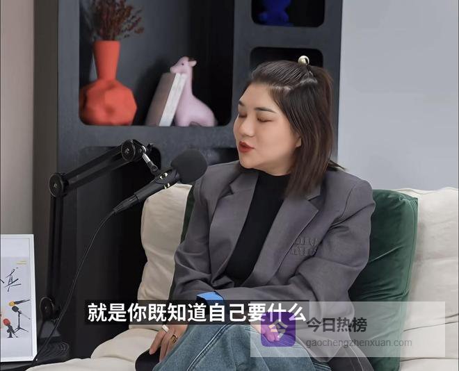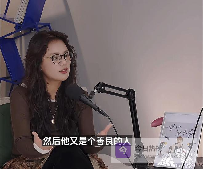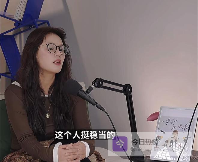 她穿一件假两件的针织衫,留着披肩卷发,戴一副黑色边框的眼镜。坐在镜头前侃侃而谈,整个人都散发着成熟的魅力。