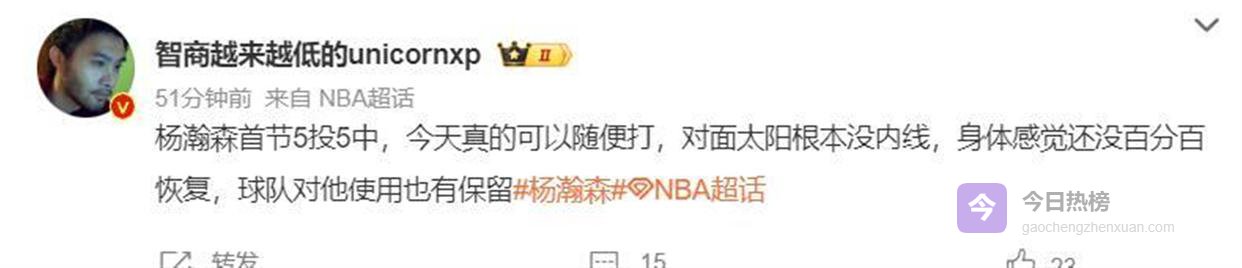 欧洲篮球专家王健在评论中也直言,杨瀚森第一节随便打,因为太阳队根本没有内线。 球队对他的使用明显有所保留,毕竟他刚刚从背伤中恢复,身体并非百分百状态。