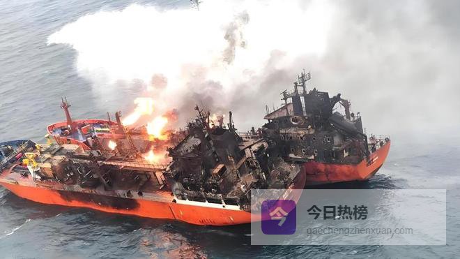 导弹命中后,舰体中部燃起浓烟,火光持续燃烧超过40分钟。
