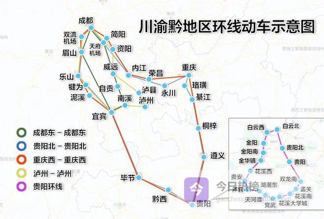 如今,依托成贵高铁、成渝城际铁路、成自宜高铁、渝昆高铁渝宜段、贵阳环线铁路等线路,成都东、重庆西、贵阳北、泸州等多站已开行环线列车,一趟列车即可串联起川渝黔核心城市群,织就一张覆盖两省一市的“流动交通网”。