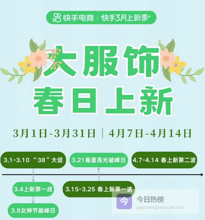 新春启新程,焕新正当时。目前,快手3月上新季已正式开启,将贯穿整个3月,以更简单直接的优惠玩法和丰富的尖货好物,和用户共同开启春日焕新购物季。而大服饰春日上新活动将以精准节点规划、多重政策资源扶持、全新场域玩法于一体的春日焕新舞台,助力大服饰商家在3月春日消费的黄金窗口期抢占先机,开启今年生意增长新篇章。