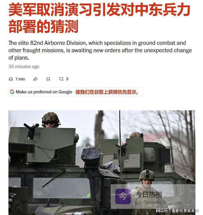 另据《华盛顿邮报》报道,美国陆军突然取消了在北卡罗来纳州布拉格堡举行的第82空降师司令部的一项重要训练演习。这引发了国防部内部的猜测——这些士兵可能会被派往中东参加对伊朗的战争。