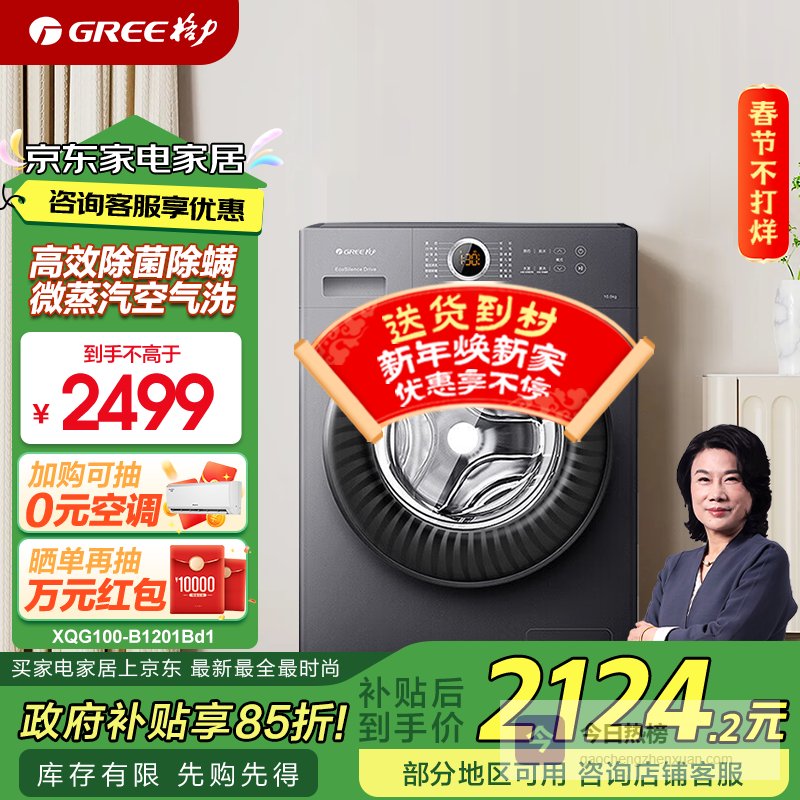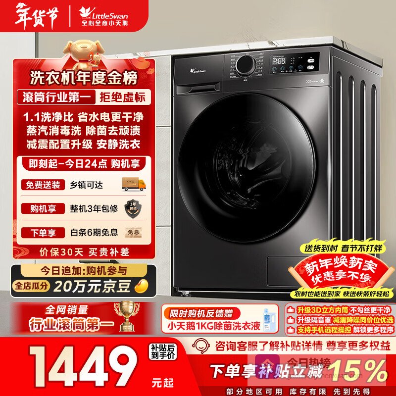 推荐理由:这款洗衣机拥有变频技术和大容量设计,能够高效深层清洗各种衣物,显著提升家庭洗衣体验,让日常清洁变得轻松便捷。