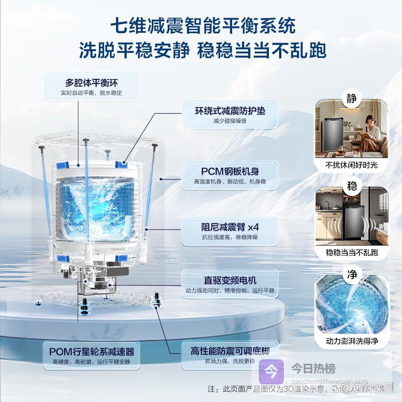 低噪音洗衣体验:先进的直驱变频电机与智能平衡系统,让洗衣过程更加安静,适合各种居住环境。