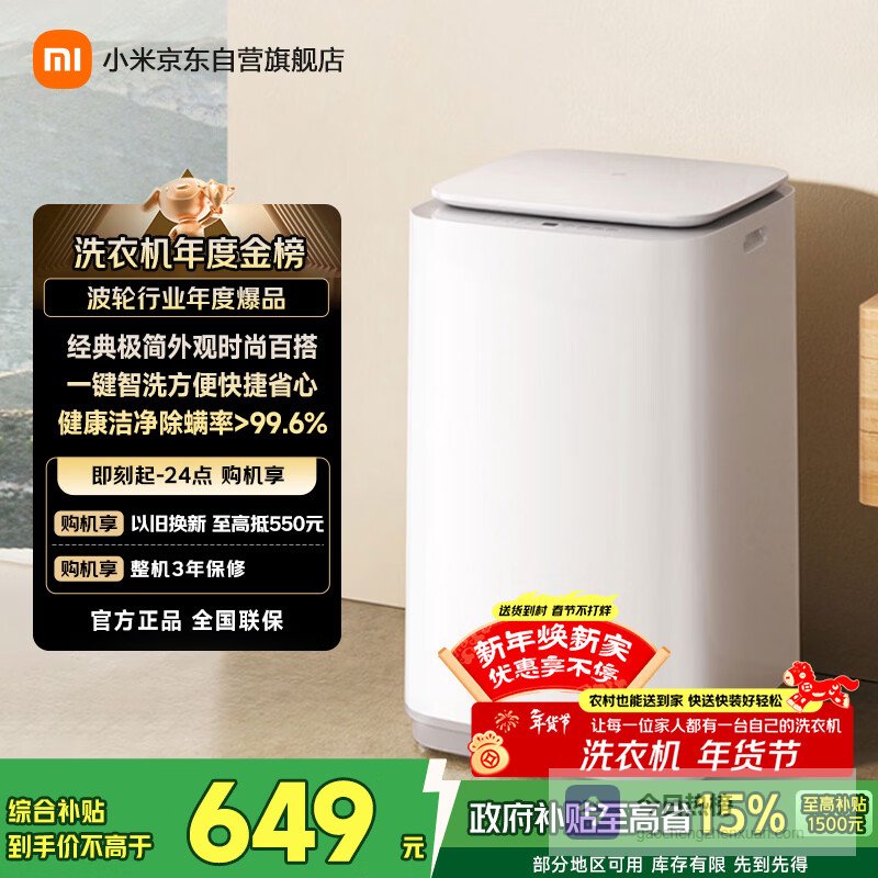【京东自营】米家【一级能效更省电】小米波轮洗衣机全自动8公斤超净洗羊毛洗家用波轮国家补贴租房宿舍XQ¥