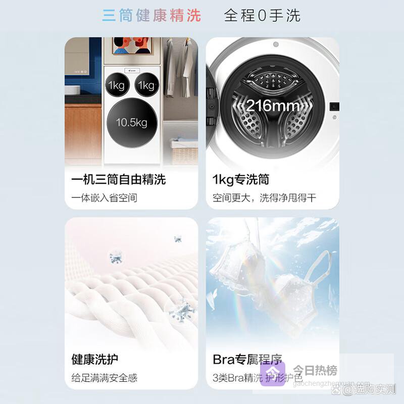 分区健康洗涤:专为各类衣物设计的三筒分区功能,确保优质清洗,杜绝交叉污染,特别适合家庭和母婴使用。