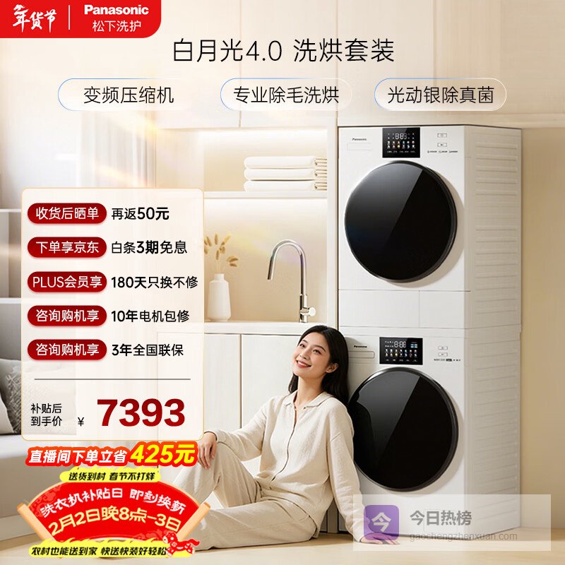 推荐入手:松下白月光4.0洗烘套装 10kg滚筒+热泵烘干机