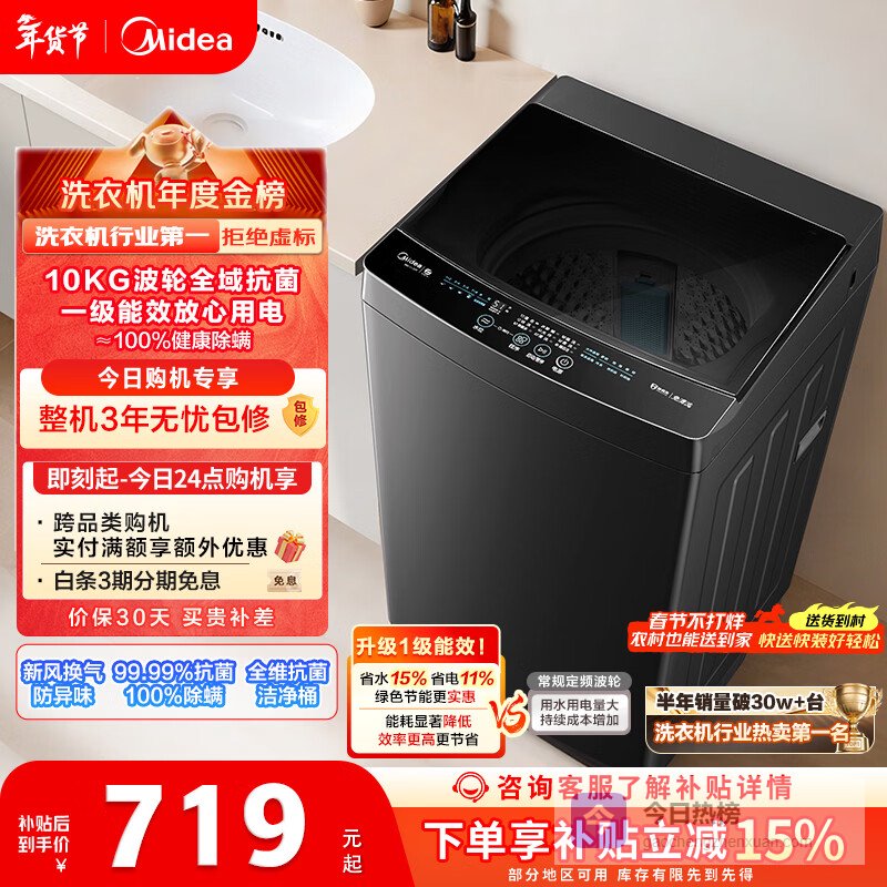 推荐入手:美的10公斤全自动波轮洗衣机MB10V37T