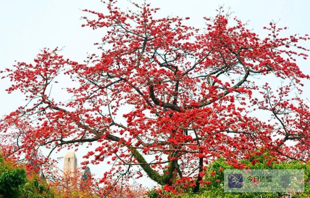 羊城最标志性的红,藏在越秀区陵园西路的95株老木棉里。每年三月,树冠如火炬般炸开,整条路被染成“流动的红毯”。