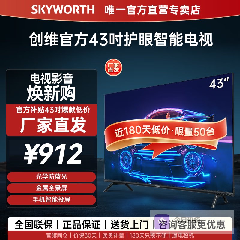 创维平板电视机43寸 健康护眼光学防蓝光 全高清金属全面屏液晶平板电视机43吋 H3升级款 43英寸 电视【官方直营】¥