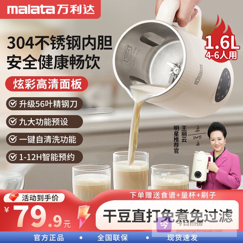 推荐入手:万利达多功能破壁豆浆机1.6L