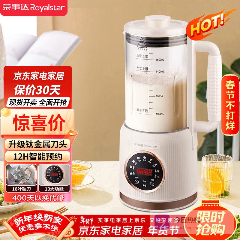【京东自营】荣事达破壁机家用豆浆机1.8L多功能全自动免煮可预约免滤料理辅食机3-5人升级钛刀RZ-¥
