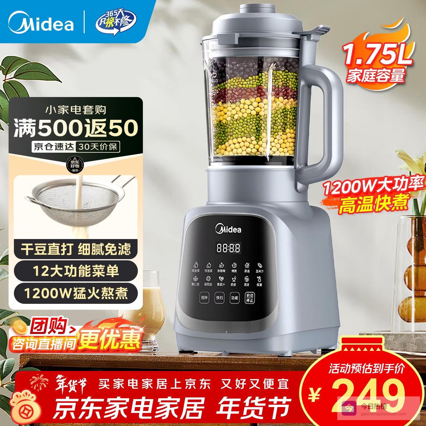 【品牌直营】美的破壁机1.75L大容量家用早餐豆浆机全自动免滤免煮料理机多功能智能榨汁机大功率快煮年¥