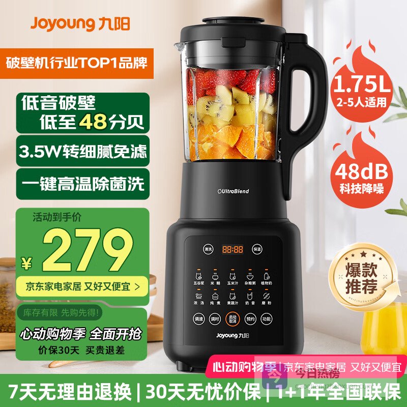 第1款:九阳破壁机家用免滤豆浆机1.75L全自动多功能