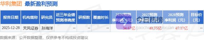海通国际证券集团有限公司寇媛媛,陈芳园近期对华利集团进行研究并发布了研究报告《4Q25营收利润不及预期,2026年盈利修复可期》,给予华利集团增持评级,目标价56.5元。