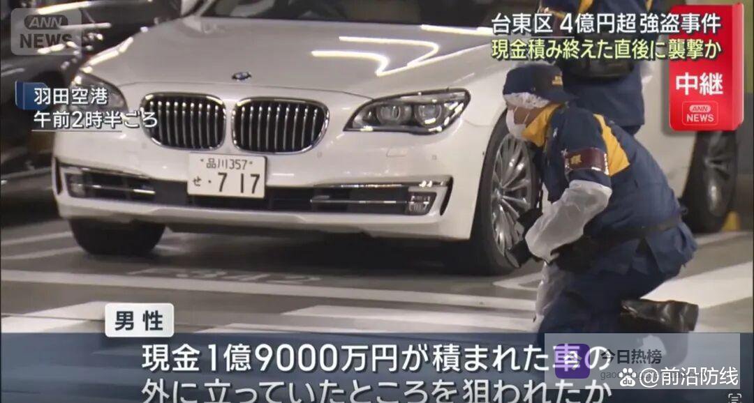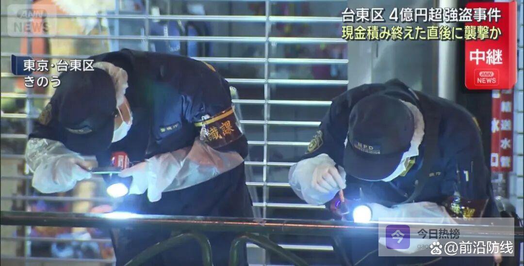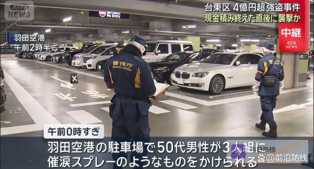 头一桩在上野那块地方。时间差不多是晚上九点半。一个四十来岁的中国男人在那儿。他还有几个日本同伴。两男三女吧。年纪都不太一样。他们正把箱子往车里搬。箱子看着挺沉的。路上没什么人注意他们。结果突然就来了三个人。那几个人拿着喷雾就喷。箱子里装的是钱。很多钱。四亿多日元就这么没了。