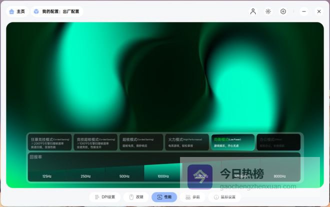 不仅如此,驱动还内置专属专业的调控界面,支持无线射频策略与鼠标运行状态的深度自定义,玩家可在狂暴竞技模式、超核模式、火力模式以及均衡模式等6项模式之间灵活切换,直接调控设备性能输出与续航表现,实现性能与功耗的精准平衡。尤为亮眼的是,切换至狂暴竞技模式后,雷柏VT7 Ultra星闪版双模无线电竞鼠标可实现≥20000fps的全段静态扫描帧速率,传感器追踪精度拉满,跟手性达到顶尖水准,操控响应极致灵敏,真正做到指随心动、指哪打哪,彻底消除操作延迟与定位偏差,助力玩家在高强度电竞对战中抢占先机、稳定发挥。