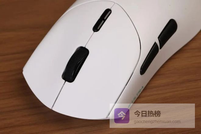 为实现极致轻量化,鼠标两侧舍弃了传统侧裙设计,却通过人性化内凹弧度优化,巧妙提升了握持时的贴合度与摩擦力,抓握稳固不打滑,兼顾轻量化与操控稳定性。鼠标左侧上方配备两颗长条形功能侧键,布局合理、按压便捷,可自定义功能适配各类游戏场景,满足多元操作需求;此处还印有专属ULTRA标识,起到了画龙点睛的作用。