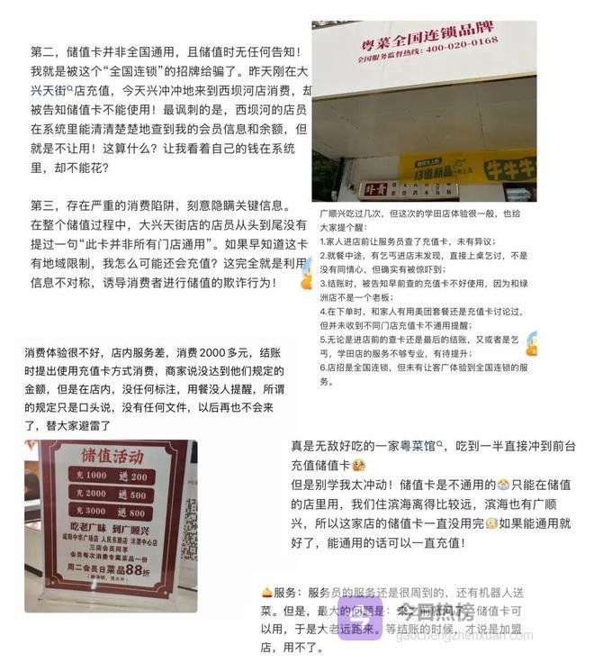 对于广顺兴储值卡不通用的情况,北京商报记者联系到广顺兴品牌所属的河南广顺兴餐饮管理有限公司,对方称目前广顺兴门店多扎根于社区,旨在更好地融入当地生活,服务周边居民。因此,各门店会根据所在社区的消费习惯和运营特点,推出因地制宜的储值方案,这在一定程度上导致了储值卡无法在所有门店通用的情况。