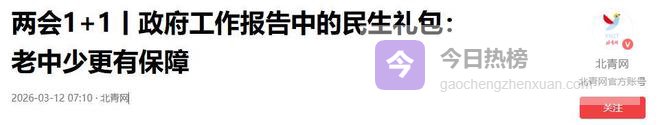 参考资料: 两会1 1丨政府工作报告中的民生礼包:老中少更有保障 2026-03-12 07:10·北青网